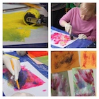 Wetherby Fulfilling Lives Centre, in collaboration with artist printmaker Milena Dragic. Weekly sessions explored movement and parachute games, sensory activities, drawing with food ingredients, making bubble sculptures, miniature garden making.