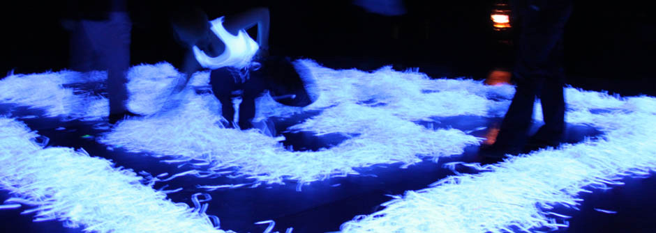 Materials: Shredded paper, UV lamp, binoculars, orchestra warm up